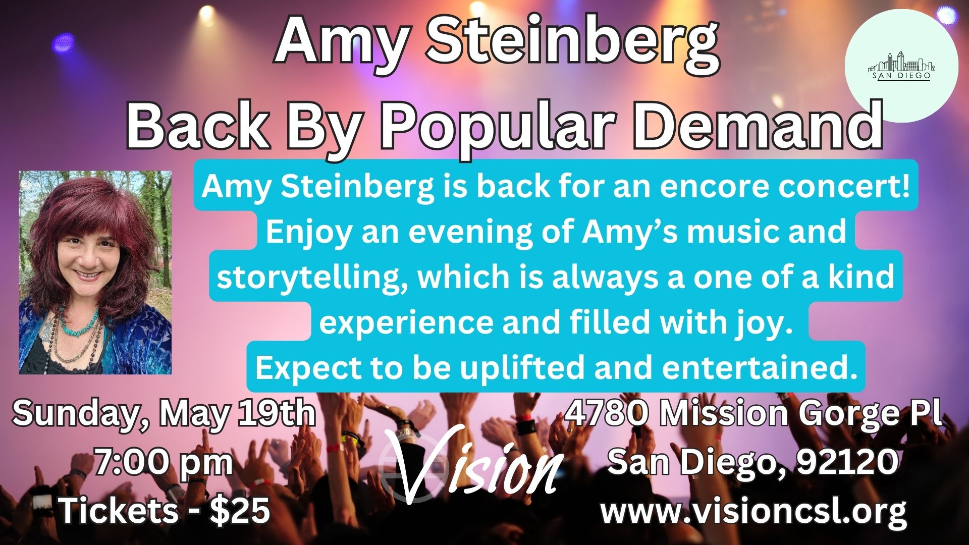 Amy Steinberg - Back By Popular Demand - Sunday, May 19 @ 7:00 pm